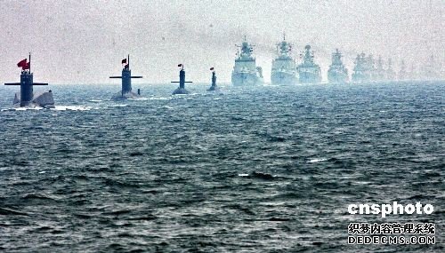 资料图:中国海军潜艇编队、水面舰艇编队。