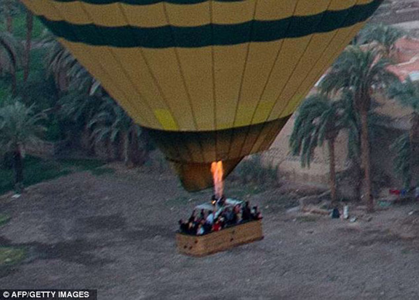 埃及26日发生涉及载人热气球的严重事故,一个载有21人的热气球,在旅游胜地卢克索跌下来,据最新消息称,至少19名游客死亡,其中相信包括9名香港人。图为稍早拍摄的热气球起飞画面。