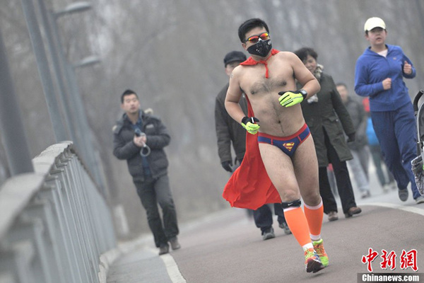 北京民众不惧重度污染参加“光猪跑”(1)(3)
