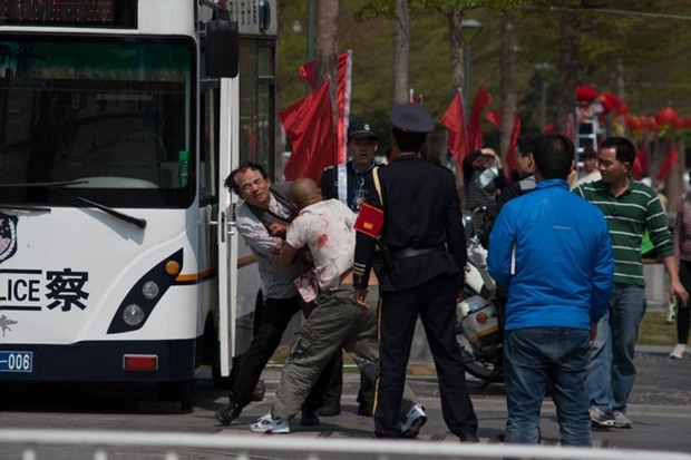 深圳两男子因纠纷在移动警车前厮打(1)(4)