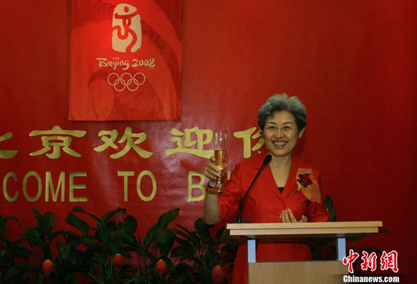 2008年8月8日,中国驻英使馆举办招待会,邀请英国各界人士及华人华侨共同观看北京奥运会的现场直播。时任中国驻英大使的傅莹身穿喜庆服装,遥祝北京奥运成功。