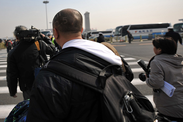 记者头剃“PM2.5”采访两会 4年4换发型(1)(2)
