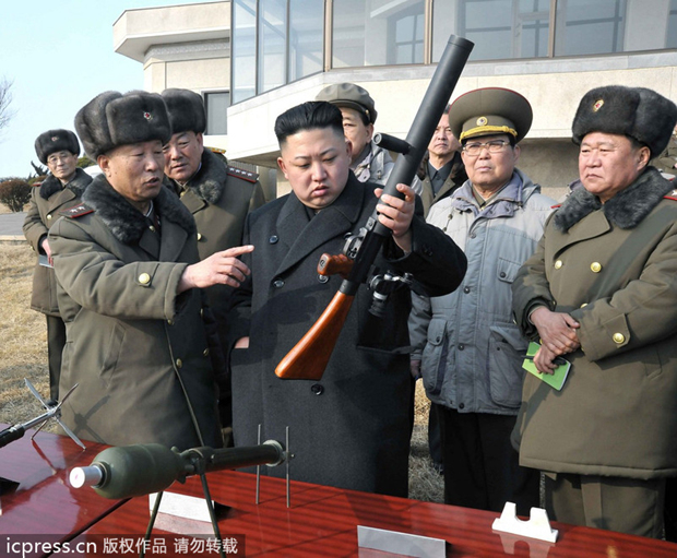 当地时间2013年2月26日消息,朝鲜最高领导人金正恩亲临炮兵部队现场指挥,以检阅部队的作战能力。图为朝中社提供的炮击场景,但并未透露具体日期。