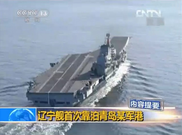 央视新闻节目中对辽宁舰靠泊青岛母港的报道