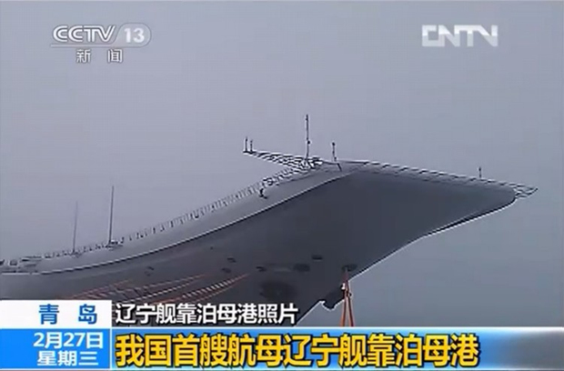 央视新闻节目中对辽宁舰靠泊青岛母港的报道