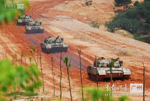 解放军96式主战坦克训练场上高速奔驰(1)(5)