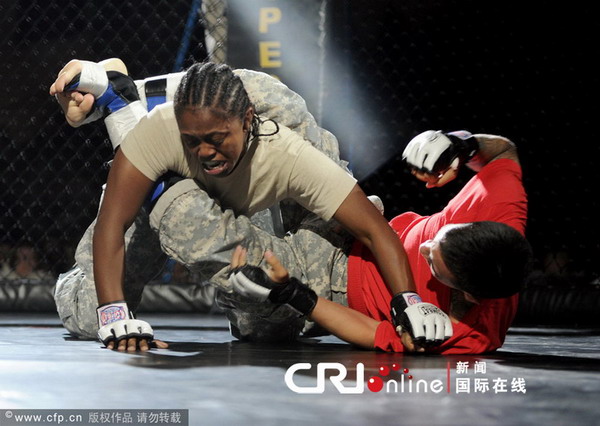 为了证明女性同样可以上前线参加战斗,一些美军女兵参加了“笼中格斗”比赛,与男兵进行激烈的对抗