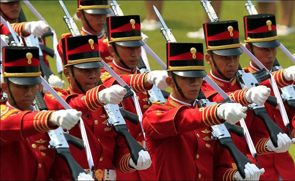 印尼太炎热 女兵阅兵时体力不支(1)(3)