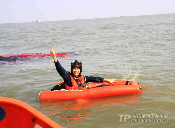解放军女飞行员组织海上跳水救生训练(1)(6)