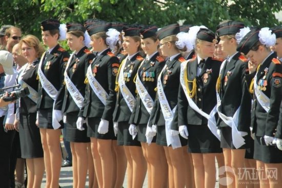 俄军校女生大晒美腿 集体亮相合影(1)(2)