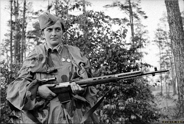 1941年8月,第25步兵师奉命保卫一个位于巴亚耶夫卡附近极具价值的山头。在巴亚耶夫卡附近的一个村落,柳德米拉获得了她的头2个战果。柳德米拉和一个观察兵一道活动,武器是1支带P.E.4瞄准具的莫辛-那甘 1891/30 7.62毫米狙击步枪。这种5发弹仓的步枪的初速是2800英尺/秒,有效射程超过600码,是当时最好的狙击步枪之一。在敖德萨作战的2个半月里,柳德米拉一共打死了187个敌人。当敖德萨确实已无法坚守时,苏军独立濒海集群撤往塞瓦斯托波尔。在接下来的残酷战斗中,柳德米拉于1942年6月被德军迫击炮弹炸伤。根据最高统帅斯大林本人的命令,柳德米拉乘潜艇撤离塞瓦斯托波尔。到这时,她的战果已达惊人的309个。