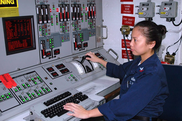 美国航母内的华裔女兵独立值更机电系统。