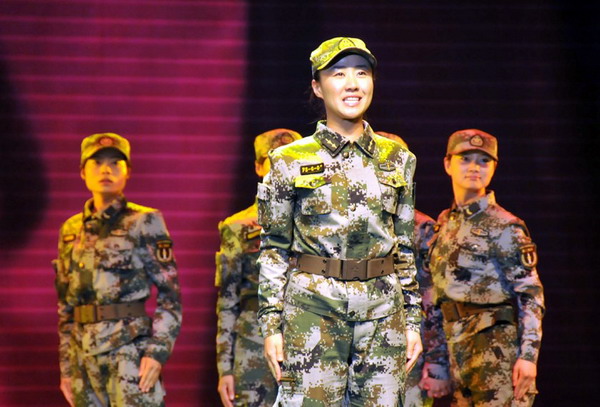 女子导弹发射连的女兵们正在为晚上的文艺演出做准备。